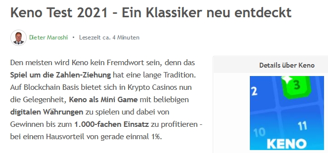 Zu den einfachsten und trotzdem sehr reizvollsten Casino Spiele gehört Keno. Während dieses Spiel im Leben oftmals durch unübersichtliche Spielscheine und kaum zu erfassende Spielanleitungen den einen oder anderen Interessenten verschreckt, macht die Online Casino Variante richtig Spaß. Der Hauptgrund für die Freude am Spiel wie auch beim Poker sind die doch sehr einfachen Regeln, die ständige Spannung und natürlich auch die kleinen und großen Gewinne. Aus 80 Zahlen wählt der Spieler bis zu 10 Zahlen aus und kann sich dann überraschen lassen, wie viele Zahlen richtig getippt worden sind – das macht den einfachen Reiz dieses Spieles aus. Ähnlich wie beim Lotto handelt es sich hier um eine Zahlenwette, jedoch mit in der Regel feststehenden Gewinnquoten, die sich nach der Anzahl der getippten Zahlen richten.